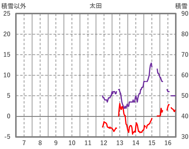 | 日 | 時 | 気温 | 降水 | 風向/風速 | 日照 | 積雪 | 降雪 |