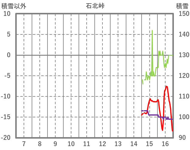 | 日 | 時 | 気温 | 降水 | 風向/風速 | 日照 | 積雪 | 降雪 |
