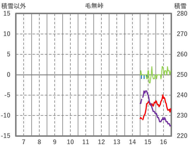 | 日 | 時 | 気温 | 降水 | 風向/風速 | 日照 | 積雪 | 降雪 |