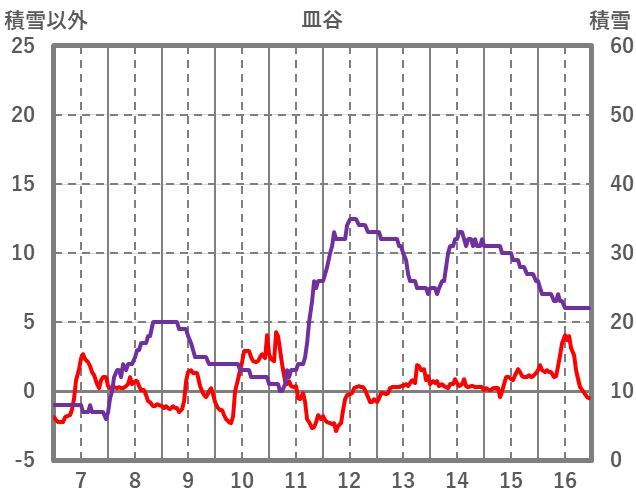 | 日 | 時 | 気温 | 降水 | 風向/風速 | 日照 | 積雪 | 降雪 |