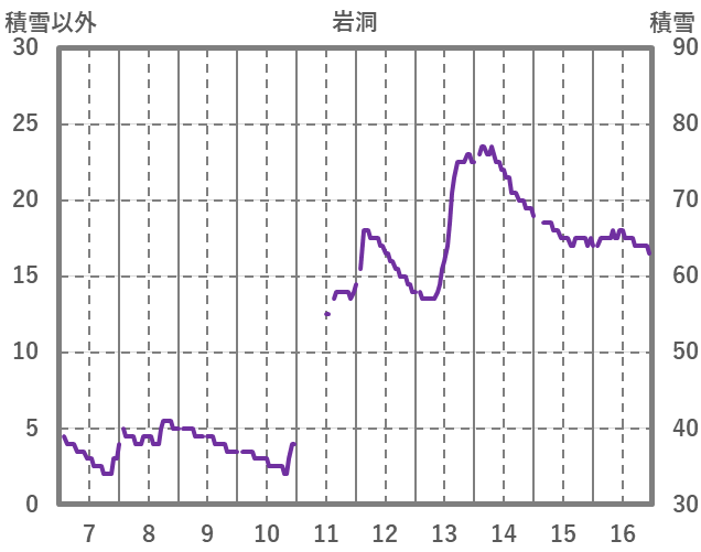 | 日 | 時 | 気温 | 降水 | 風向/風速 | 日照 | 積雪 | 降雪 |