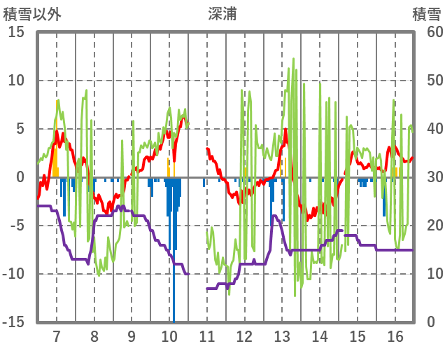| 日 | 時 | 気温 | 降水 | 風向/風速 | 日照 | 積雪 | 降雪 |