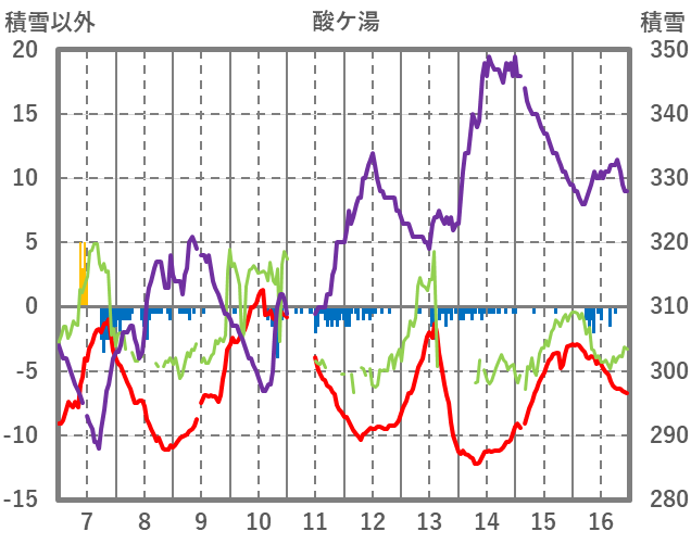 | 日 | 時 | 気温 | 降水 | 風向/風速 | 日照 | 積雪 | 降雪 |