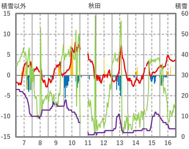 | 日 | 時 | 気温 | 降水 | 風向/風速 | 日照 | 積雪 | 降雪 |