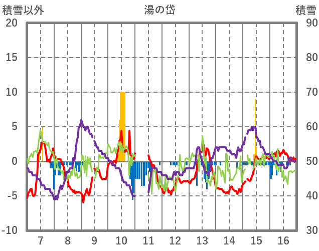 | 日 | 時 | 気温 | 降水 | 風向/風速 | 日照 | 積雪 | 降雪 |