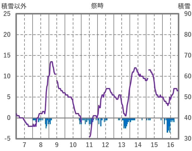 | 日 | 時 | 気温 | 降水 | 風向/風速 | 日照 | 積雪 | 降雪 |