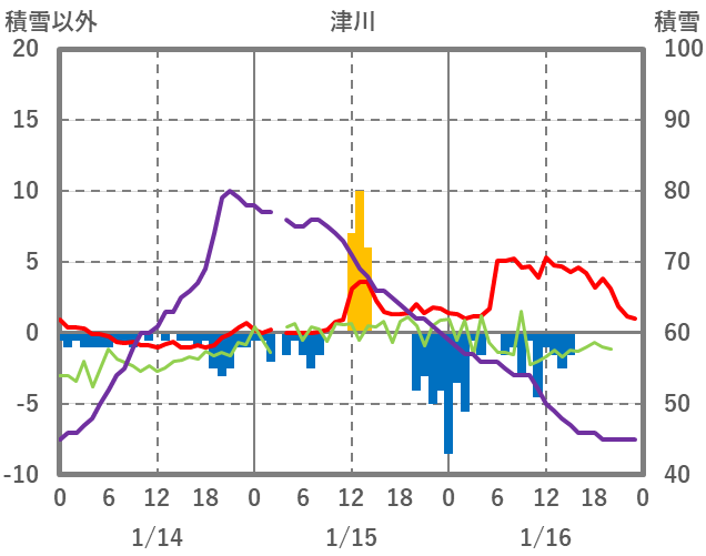 | 日 | 時 | 気温 | 降水 | 風向/風速 | 日照 | 積雪 | 降雪 |