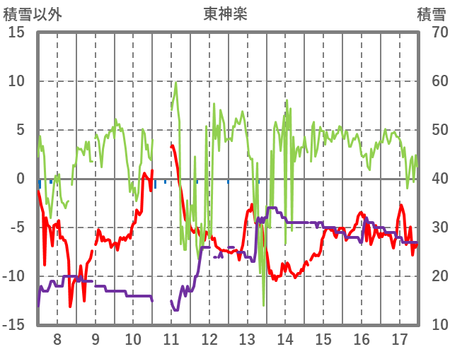 | 日 | 時 | 気温 | 降水 | 風向/風速 | 日照 | 積雪 | 降雪 |