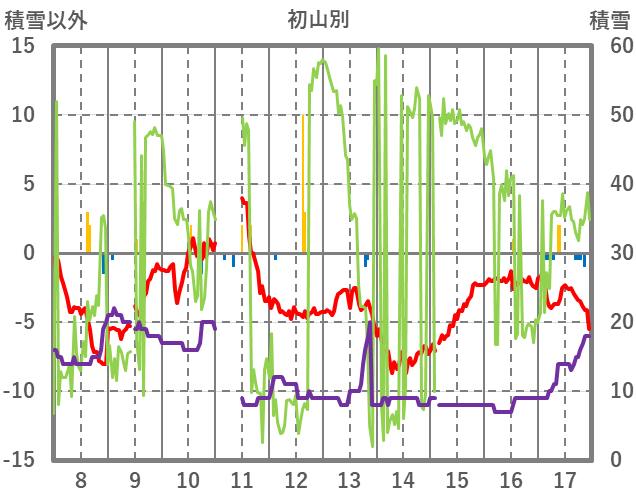| 日 | 時 | 気温 | 降水 | 風向/風速 | 日照 | 積雪 | 降雪 |
