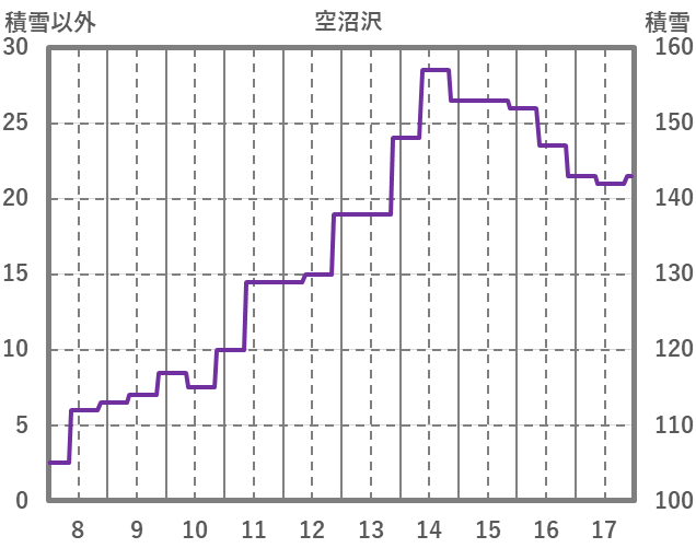 | 日 | 時 | 気温 | 降水 | 風向/風速 | 日照 | 積雪 | 降雪 |