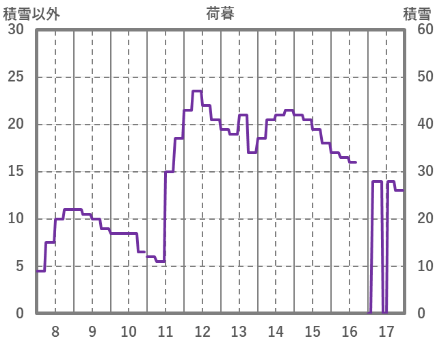 | 日 | 時 | 気温 | 降水 | 風向/風速 | 日照 | 積雪 | 降雪 |