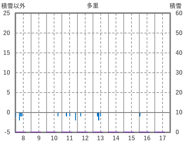 | 日 | 時 | 気温 | 降水 | 風向/風速 | 日照 | 積雪 | 降雪 |