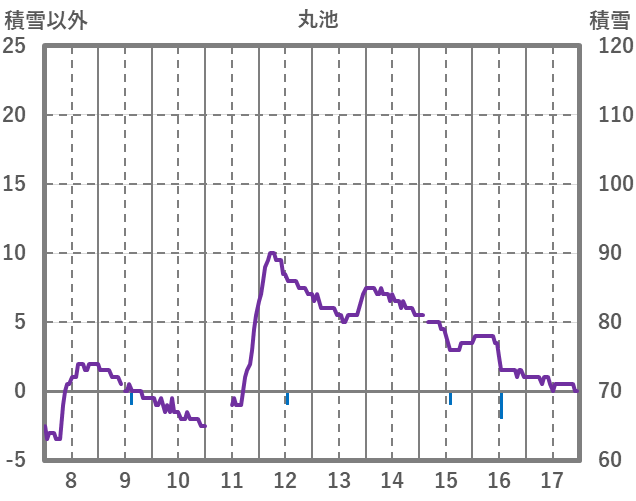 | 日 | 時 | 気温 | 降水 | 風向/風速 | 日照 | 積雪 | 降雪 |