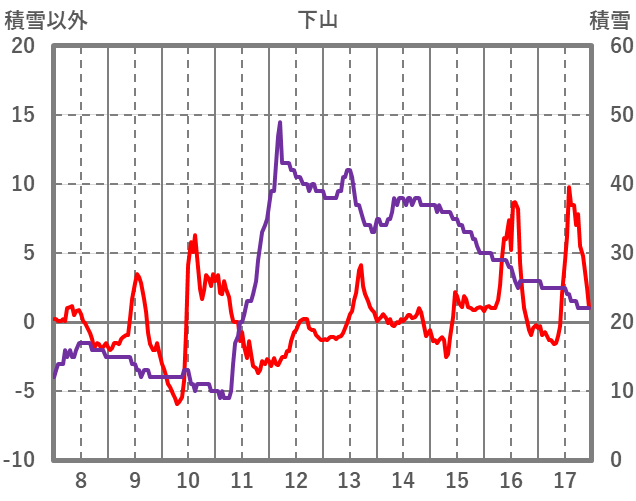 | 日 | 時 | 気温 | 降水 | 風向/風速 | 日照 | 積雪 | 降雪 |