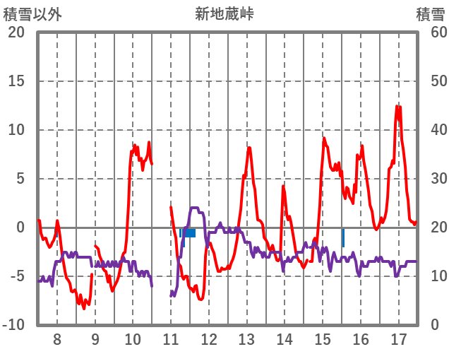 | 日 | 時 | 気温 | 降水 | 風向/風速 | 日照 | 積雪 | 降雪 |