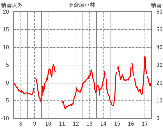 | 日 | 時 | 気温 | 降水 | 風向/風速 | 日照 | 積雪 | 降雪 |