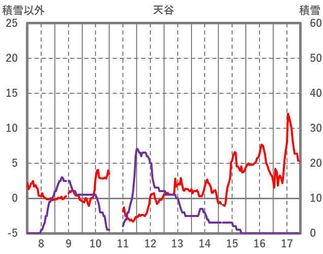 | 日 | 時 | 気温 | 降水 | 風向/風速 | 日照 | 積雪 | 降雪 |