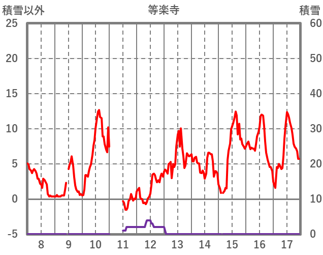 | 日 | 時 | 気温 | 降水 | 風向/風速 | 日照 | 積雪 | 降雪 |