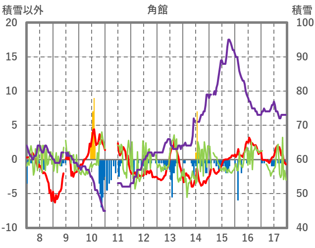 | 日 | 時 | 気温 | 降水 | 風向/風速 | 日照 | 積雪 | 降雪 |
