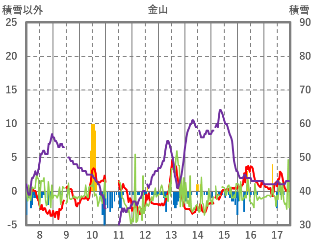 | 日 | 時 | 気温 | 降水 | 風向/風速 | 日照 | 積雪 | 降雪 |