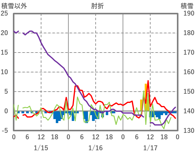 | 日 | 時 | 気温 | 降水 | 風向/風速 | 日照 | 積雪 | 降雪 |