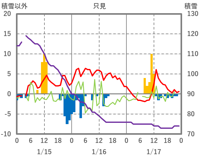 | 日 | 時 | 気温 | 降水 | 風向/風速 | 日照 | 積雪 | 降雪 |