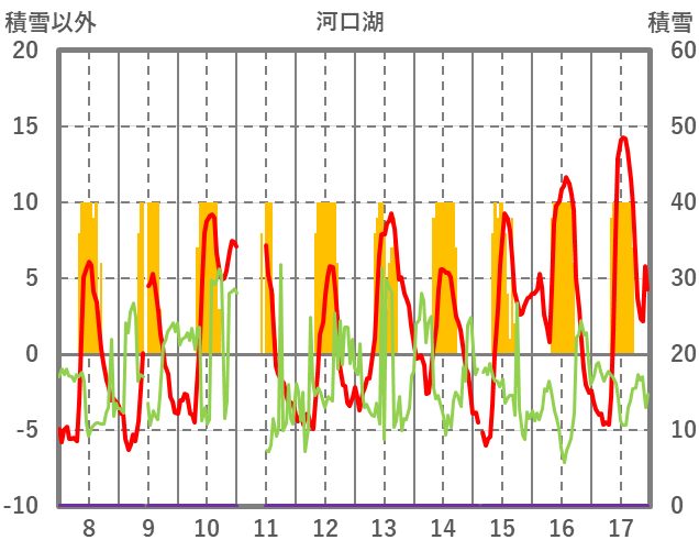 | 日 | 時 | 気温 | 降水 | 風向/風速 | 日照 | 積雪 | 降雪 |