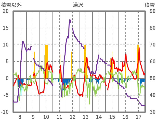 | 日 | 時 | 気温 | 降水 | 風向/風速 | 日照 | 積雪 | 降雪 |