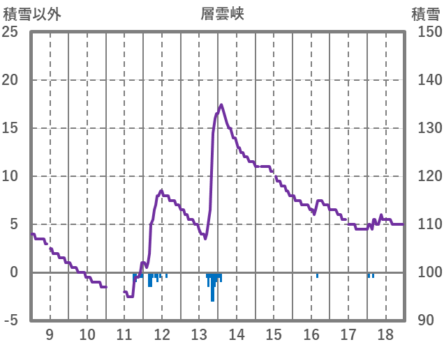 | 日 | 時 | 気温 | 降水 | 風向/風速 | 日照 | 積雪 | 降雪 |