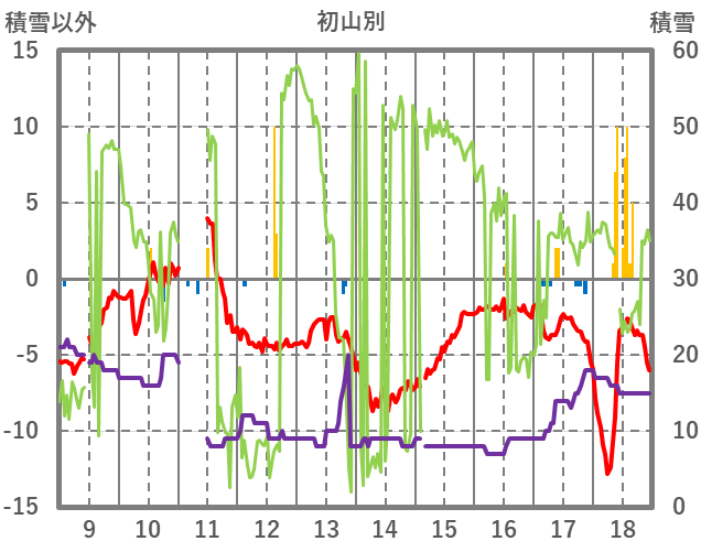 | 日 | 時 | 気温 | 降水 | 風向/風速 | 日照 | 積雪 | 降雪 |