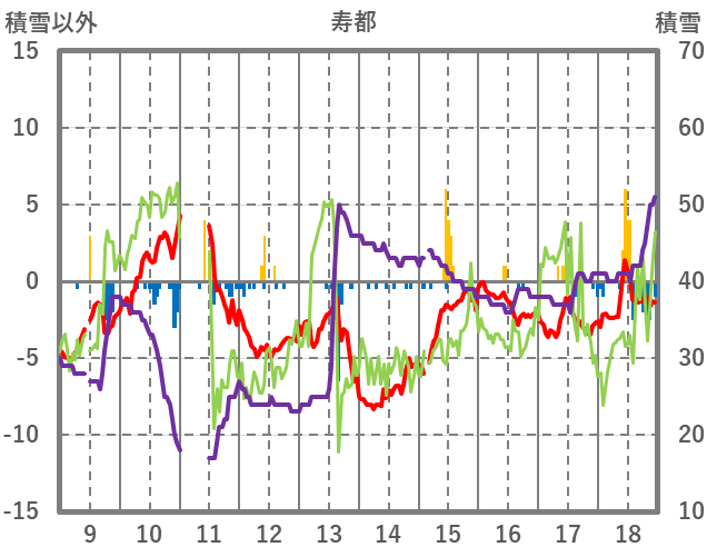 | 日 | 時 | 気温 | 降水 | 風向/風速 | 日照 | 積雪 | 降雪 |