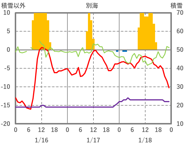 | 日 | 時 | 気温 | 降水 | 風向/風速 | 日照 | 積雪 | 降雪 |