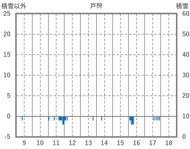 | 日 | 時 | 気温 | 降水 | 風向/風速 | 日照 | 積雪 | 降雪 |