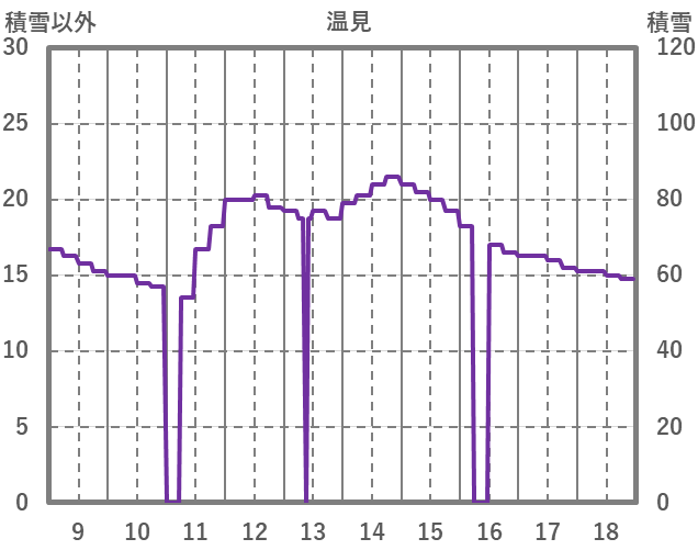 | 日 | 時 | 気温 | 降水 | 風向/風速 | 日照 | 積雪 | 降雪 |