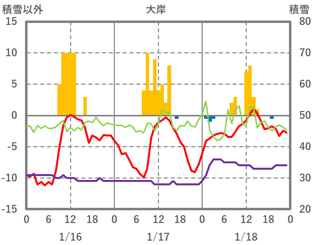 | 日 | 時 | 気温 | 降水 | 風向/風速 | 日照 | 積雪 | 降雪 |