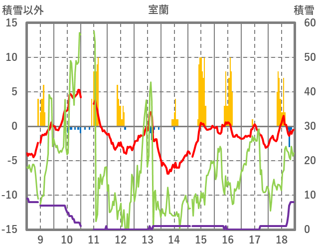| 日 | 時 | 気温 | 降水 | 風向/風速 | 日照 | 積雪 | 降雪 |