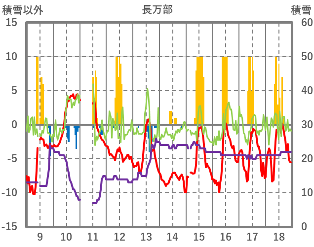 | 日 | 時 | 気温 | 降水 | 風向/風速 | 日照 | 積雪 | 降雪 |