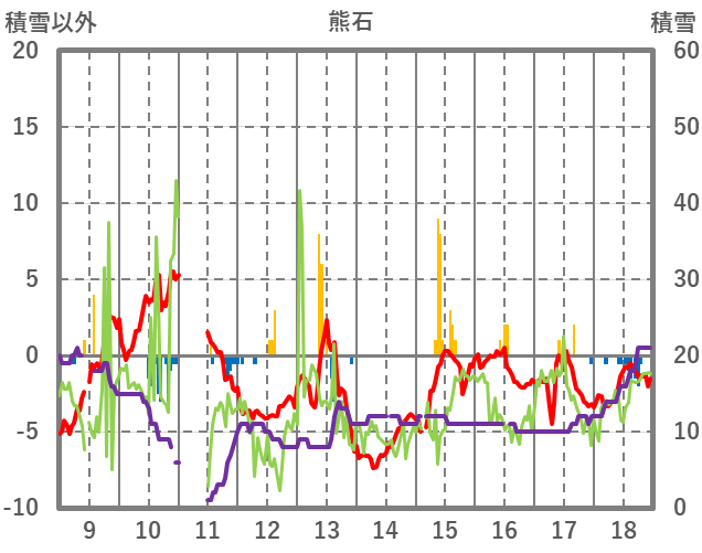 | 日 | 時 | 気温 | 降水 | 風向/風速 | 日照 | 積雪 | 降雪 |
