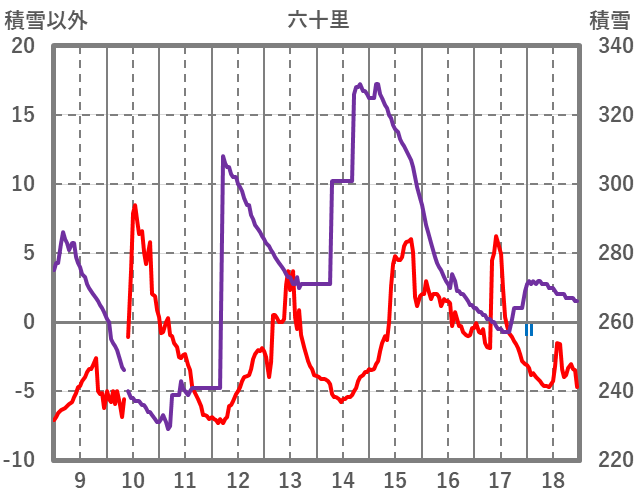 | 日 | 時 | 気温 | 降水 | 風向/風速 | 日照 | 積雪 | 降雪 |