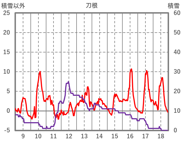 | 日 | 時 | 気温 | 降水 | 風向/風速 | 日照 | 積雪 | 降雪 |