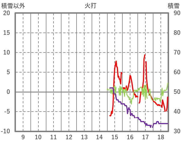 | 日 | 時 | 気温 | 降水 | 風向/風速 | 日照 | 積雪 | 降雪 |