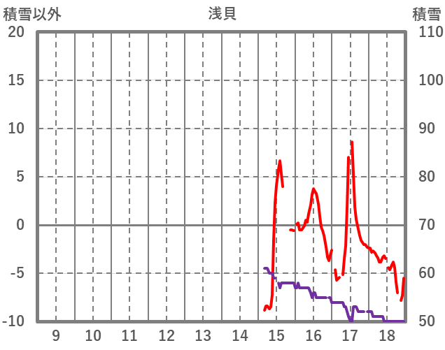 | 日 | 時 | 気温 | 降水 | 風向/風速 | 日照 | 積雪 | 降雪 |