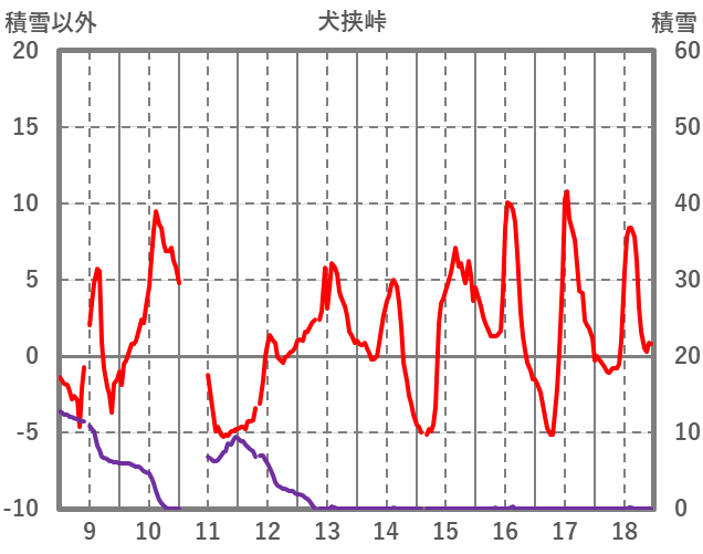 | 日 | 時 | 気温 | 降水 | 風向/風速 | 日照 | 積雪 | 降雪 |