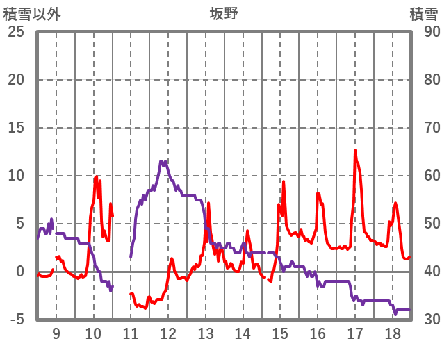 | 日 | 時 | 気温 | 降水 | 風向/風速 | 日照 | 積雪 | 降雪 |