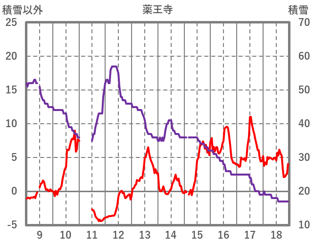 | 日 | 時 | 気温 | 降水 | 風向/風速 | 日照 | 積雪 | 降雪 |