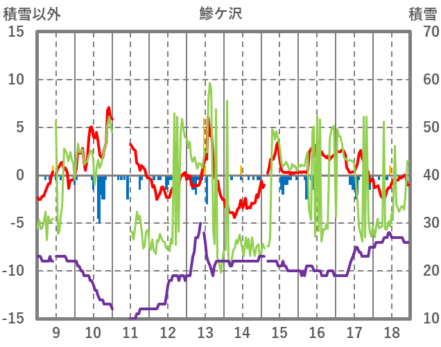 | 日 | 時 | 気温 | 降水 | 風向/風速 | 日照 | 積雪 | 降雪 |