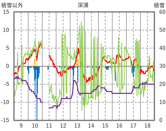 | 日 | 時 | 気温 | 降水 | 風向/風速 | 日照 | 積雪 | 降雪 |