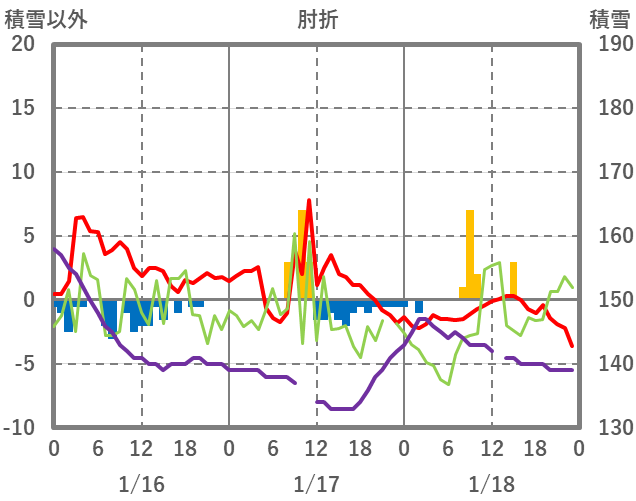 | 日 | 時 | 気温 | 降水 | 風向/風速 | 日照 | 積雪 | 降雪 |