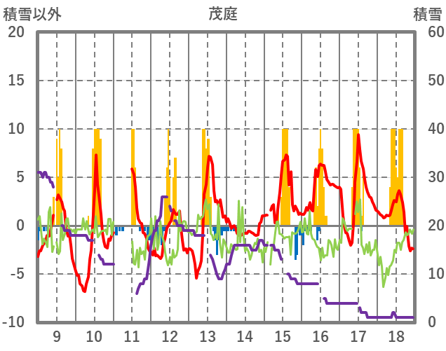 | 日 | 時 | 気温 | 降水 | 風向/風速 | 日照 | 積雪 | 降雪 |