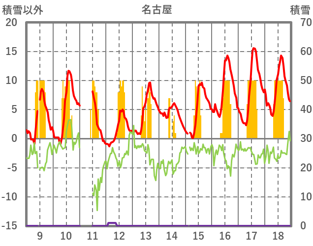 | 日 | 時 | 気温 | 降水 | 風向/風速 | 日照 | 積雪 | 降雪 |